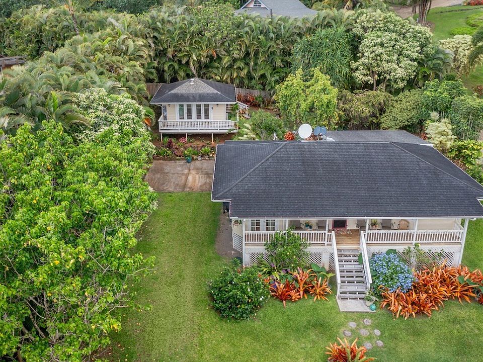 BACK ON THE MARKET! Won't last long! New water, brand new roof! Come see this move-in ready upcountry 3/2 home on a half-acre of delightful tropical foliage! This 3/2 Kapaa home features a spacious enclosed lanai with hardwood ipe flooring and a single-car garage. There is also a detached 500 sq. art studio/office with its own lanai. It has French doors with its own lanai and a side door entry also. It is wired for 110 & 220, for all kinds of projects. The home is located in Lydgate Rise, one of the nicest country neighborhoods in the Kapaa/Wailua area, just minutes from the conveniences of downtown Kapaa and its beaches! Close to the foot of Sleeping Giant Mountain, fun for family hiking. Light, bright and airy, this home features refinished solid oak floors, lots of windows, and a remodeled kitchen with travertine floor and composite stone countertop. Craftsman touches add to the charm of this home.