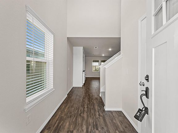 Enjoy peaceful sunrise views from your private upper-level balcony overlooking the water—an uncommon feature that truly sets this home apart. This well-designed 4-bedroom, 2.5-bath home offers an open-concept layout with spacious living, dining, and kitchen areas. The kitchen features granite countertops, ample cabinet and counter space, ideal for everyday living and entertaining. The first floor includes a convenient half bath, a two-car garage, and access to the backyard featuring a large covered patio, custom walkway leading to a fire pit, and a gate providing easy access to the greenbelt for morning or evening walks. Upstairs, the primary suite includes a private balcony, dual vanities, a separate tub and shower, and a large walk-in closet. Additional bedrooms offer flexibility for guests, office, or game room space. Located in a growing Katy community near shopping, dining, and schools—perfect as a starter or forever home.