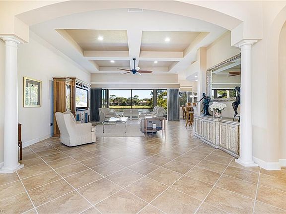 This fully solar home delivers exceptional energy efficiency and virtually no power bill, and it is perfectly positioned to embrace the beauty of lakefront living on one of the community’s most desirable waterfront parcels. Offering 4 bedrooms plus a den and an impressive 840 sq. ft. 3-car garage, this thoughtfully designed residence showcases peaceful water views from nearly every major room, creating a sense of calm the moment you step inside. The gourmet kitchen serves as the heart of the home with granite countertops, upgraded 42" cherry cabinetry, a center island with prep sink, eat-at bar, pantry, built-in desk, and newer stainless appliances—ideal for both everyday meals and effortless entertaining. The elegant dining room and sunlit breakfast nook provide warm, inviting spaces to gather while enjoying serene lake vistas. The open great room is equally captivating, featuring 12' coffered ceilings and pocket sliders that blend indoor and outdoor living. Step onto the expansive screened lanai to watch water birds glide across the lake, host al fresco dinners, or simply relax with a good book while savoring the gentle Florida breezes. Already plumbed for a future outdoor kitchen and offering plenty of space to add a pool, this outdoor retreat inspires year-round enjoyment. A split-bedroom layout offers privacy for family and guests, while the primary suite feels like a personal sanctuary with direct lanai access, a custom California-style closet system, dual vanities, and a separate soaking tub and shower. Additional upgrades elevate comfort and peace of mind, including diagonal tile, LVP flooring, decorative niches, plantation shutters, electric hurricane shutters, and upgraded hurricane impact windows throughout, which provide superior storm protection, improved efficiency, noise reduction, and lasting security. The home is further enhanced by an EV charging outlet, newer AC units, a newer hot water heater, a fully monitored security system, and a spacious laundry room with sink and work counter. Emerson Square offers a welcoming, amenity-rich lifestyle with a clubhouse, fitness center, community pool, and play area—all in a beautifully maintained gated setting. Ideally located west of US-41, you’ll enjoy effortless access to Southwest Florida’s best beaches, dining, grocery options, Miromar Outlets, Coconut Point, I-75, RSW Airport, Estero, Bonita Springs, and Naples, along with the added benefit of no CDD fees. With its unbeatable location, impressive upgrades, and tranquil waterfront setting, this home presents a rare opportunity to experience true Florida living at its finest. Schedule your private showing today and see why this exceptional residence stands out from the rest.n Offered furnished with exclusions.