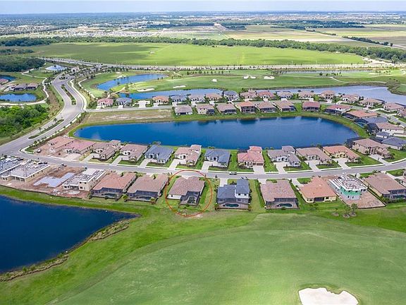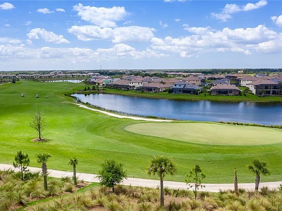 This Brand New Toscana is offered at a NEW Price for a Quick Sale! INQUIRE TODAY for Special "END OF QUARTER" Builder Incentives! Have a FRONT ROW SEAT TO PGA Qualifying Web"."com Tour...from your massive Covered Lanai! What a Spectacular opportunity to bear witness to this golfing spectacle. As you make your approach to "Arnie Loop", you will appreciate the significance of this homesite's premium location. The view offers the golfer an extraordinary glimpse of the rolling fairways of the first hole on Arnold Palmer's Signature 36 Hole Golf Course. Every Premium Homesite deserves an equally impressive residence, & that is where the Toscana Shines. The Prominent 4 PILLARED PORTICO Entry w/ Generous Covered Area enjoys one of the very best "Curb Appeal" designs in Lakewood National, & the Gorgeous Decorative Front Door sets an an early tone of Excitement. As you enter, your gaze immediately shifts to a Stunning Gathering Room w/ three Large Glass Sliders that showcase a Brightly Illuminated Pool & Spa w/ Summer Kitchen. The Toscana also offers one of the best interior kitchen concepts too, & features granite counters that actually Mirror the alignment of a Terrific Aquarium window! The Private Owners' Retreat is roomy & offers 2 walk in closets & en-suite bath. Owners enjoy a full golf membership, resort style pool, poolside cafe, tennis courts, pickle ball, fitness, & full service spa at Lakewood National for a resort style experience in the country's second fastest growing location...Lakewood Ranch!