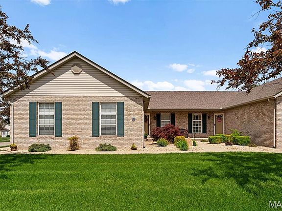 Nestled on a prime corner lot just south of downtown Smithton, this charming and updated villa presents a delightful blend of comfort, style, and convenience! Step inside this beautifully maintained 2-bedroom, 2-bathroom home and immediately appreciate the fresh, modern ambiance created by numerous upgrades. You'll love the sought-after main-level primary suite, the ease of main-level laundry, and the convenience of an attached 2-car garage. The inviting open floor plan, enhanced by a vaulted ceiling, is filled with natural light, creating a warm and welcoming atmosphere. Stylish and durable hard-surface flooring flows effortlessly throughout most of the home, offering a cohesive and easy-to-care-for living space. Gather around the cozy gas fireplace in the heart of the home, perfect for relaxing evenings. The well-equipped kitchen boasts sleek stainless-steel appliances, ample cabinet space, and stunning quartz countertops, all ready for all your culinary creations.