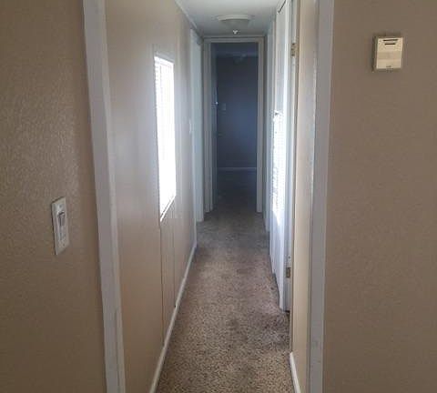 This unit has been recently rehabbed- New Heating and evaporative cooler. Very open Floor plan- Has large kitchen that adjoins living room area. remodeled bathroom with double sinks. Has separate laundry room. Carport. and also has front porch. Large yard with newer storage shed.Gated Park- Community Pool and spa. Has community club house and playground fpr children