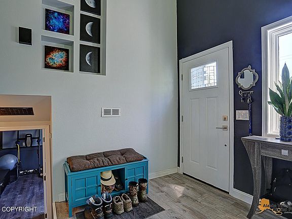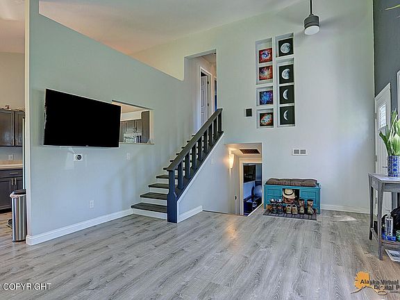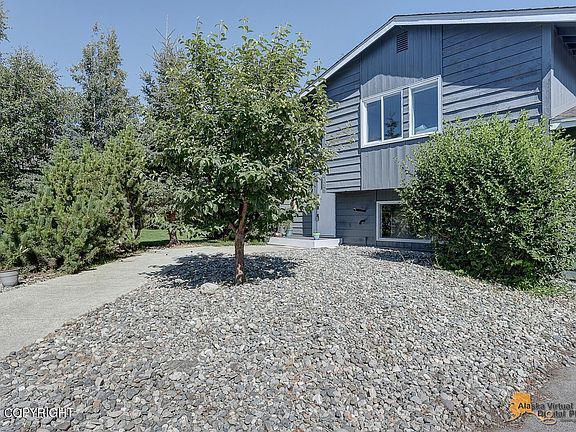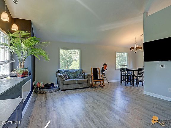 Lovely updated tri-level home on 1.36 acres w/ huge attached 3 car garage in great neighborhood! 3 bed/2 bath home w/ vaulted ceilings, new LVP flooring throughout, wired audio, remodeled bathroom, & new interior/exterior doors. Perfect commuter location between Palmer & Wasilla, zero stoplights to Anch. Quiet & private spacious landscaped yard w/ mountain views & established apple & berry trees!