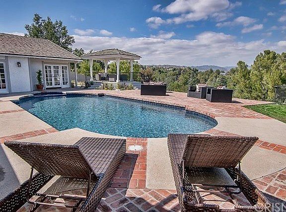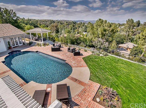 Gorgeous Just Completed Hidden Hills 1.2 ACRE VIEW Estate On A Quiet Cul-De-Sac. This 4,750 square ft. home all on one level other than large separate, yet attached, upstairs game/screening room, studio, office, 2nd master or guest quarters w/sauna, 3/4 bath, wet bar & panoramic viewing deck. Wide-plank light French Oak floors thru-out Brand new Carrara marble baths & fabulous new kitchen with Carrara marble counters & Calacutta backsplash, Viking & Sub Zero stainless appliances, apron sink, prep sink, counter seating, open to a breakfast nook, wine cellar & family room w/showers of natural light. The corner fireplace & full wet bar make these rooms perfect for entertaining. Formal living & formal dining showcased with beam ceiling detail. Spacious master suite with spa-inspired Restoration Hardware bathroom, cathedral ceilings, fireplace, His & Her walk-ins. retreat plus office/yoga room all overlooking the tranquil backyard & views- the perfect private sanctuary. The beautiful outdoors include a pool, spa, gazebo, grass lawn backyard & front yard, great for children at play, plus an undeveloped lower pad for horses, etc. Come see this rare beauty for yourself that offers everything you could ever wish for in this price range for Hidden Hills!