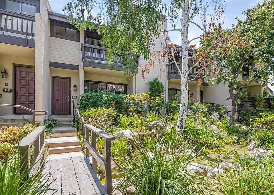 AGGRESSIVELY PRICED BY MOTIVATED SELLER!!! Lovely tri level townhome located in the highly desirable area of Woodland Hills.  There are 3 bedrooms & 2.5 baths plus a large bonus room downstairs that can be used as an office, den, playroom or storage. As you step in from the front door, you are greeted by a large living room with a cozy fireplace and a front deck with sitting area. This bright and open floor plan includes a spacious dining area with a wet bar, gleaming hard wood floors, a great cook’s kitchen complete with all the appliances, recessed lighting, plenty of cabinets & counter space and a breakfast nook next to a glass slider and balcony. All the bedrooms are spacious and bright especially the primary suite with vaulted ceilings, a walk-in closet and access to its own private balcony overlooking the Zen-like outdoors with stream and lush greenery. Not to mention newly painted, new carpets & an attached 2 car garage with direct access to the unit. Situated on a meticulously maintained complex with walking paths & bridges throughout surrounded by gorgeous landscaping & resort style amenities like tennis courts, pool & spa and a rec room. HOA includes internet, basic cable and earthquake insurance. Conveniently located minutes away from the large and upscale Westfield Topanga Mall, numerous shops and restaurants, parks and freeway access. Great opportunity so don’t miss it!