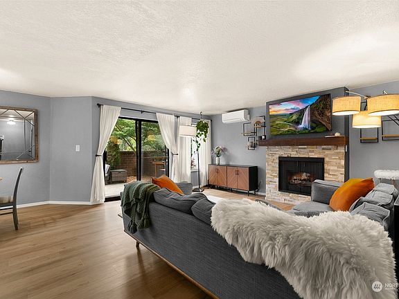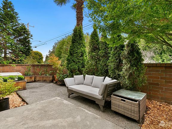 Come HOME and you won't want to leave - but so walkable. This condo has it all: Private outdoor space, A/C, Pet friendly,  hard flooring, laundry room in unit, walk-in closet. Settle into your private patio - it is secluded and quiet. 1 Bedroom + large Den located across the Street from Woodland Park Zoo and just minutes from Green Lake plus all the Shops, Restaurants, & offerings on Phinney Ridge. Dining space will fit large Table & Chairs. New wood (LVP) flooring throughout. Spacious Bedroom + large walk-in Closet with built-in Shelving & Drawers. Pantry storage and gorgeous kitchen. Dedicated Parking space+Storage included—easy Bus commute to Downtown. Pet-friendly building, exercise room, and low HOA dues!