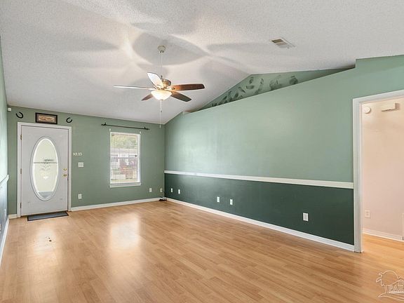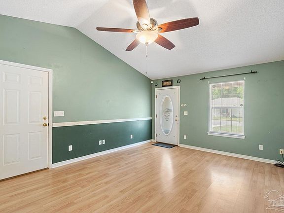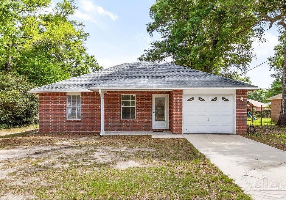 Bank on the Market!! Buyer financing fell through. Great opportunity to own this Quaint ALL Brick 3 bedroom, 2 bath home in Milton with covered front porch and New Roof 2023. 2,000 credit to buyer for updates. This home offers a split floor plan with vaulted ceilings and hardwood floors in the main living area. The open kitchen and dining area are excellent for entertaining. Plenty of space in the kitchen that features a breakfast bar, Stainless Steel Appliances and space to decorate above cabinets. The Master bedroom has a walk-in closet, double vanity and master bathroom. Back patio with Large Fenced back yard and garage. Easy access to Avalon Blvd and I-10. Convenient to reach the heart of Milton or Pensacola. Close to military bases, beaches and shopping.