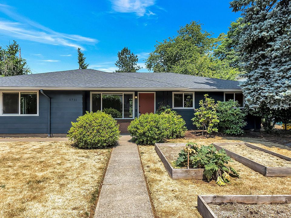 This charming ranch style home is situated on a large corner lot with multiple parks nearby including a detached two car garage for potential shop space and a spacious entertainers patio and yard! The interior boasts a large living and family room, washer/dryer, and a modern kitchen entailing quartz countertops, double sinks, and FS fridge. Ample shelving in one of the three bedrooms, updated suite has a double vanity, and hardwood flooring through out the rooms! [Home Energy Score = 3. HES Report at https://rpt.greenbuildingregistry.com/hes/OR10218910]