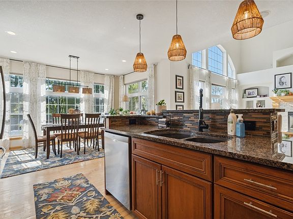 • Breakfast Bar, Eat-in Kitchen, Kitchen/Dining Combo, Bath in Primary Bedroom, Main Level Primary, Jetted Tub, Vaulted Ceiling(s), Wired for Sound