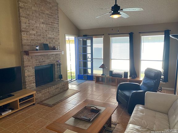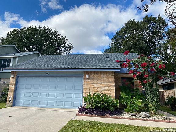 The most adorable home on the block! This 2 bedroom, 2 bath, 2 car garage home is just right for you. Enough space but not too big. High ceilings, lots of natural light, brick fireplace, breakfast bar, utility room inside, primary bedroom with lots of closet and countertop space, along with multiple closets and lots of mirrors. Bedrooms are on opposite sides of the home for privacy. Cozy kitchen with plenty of counter space for your kitchen gadgets. If you need appliances and furniture, everything is available for sale. The home is right off of Nacogdoches Rd near Madison High School and Loop 1604.