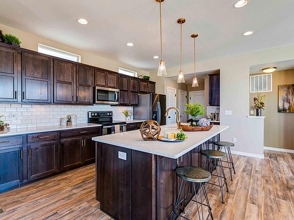 The Edison plan features an open-concept main floor layout with living room, dining area, kitchen with eat-in center island, and patio doors that lead to a private side yard and patio. The second floor provides a restful master suite with walk-in closet and dual sink vanity, along with conveniently located laundry area, and two guest bedrooms and a full bath. The Edison also has an optional, full unfinished basement for storage and future expansion in addition to an oversized 2-car garage for toys and gear.