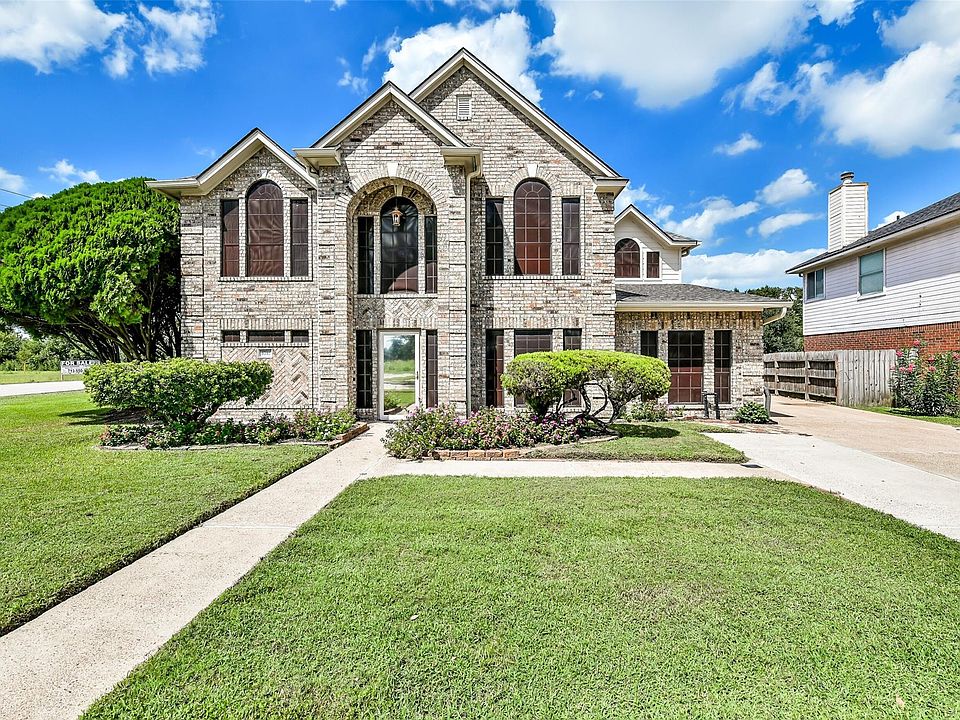 Welcome to this handsome two-story brick home offering comfort, located in Colony Park in Pearland! Boasting 4 spacious bedrooms, 2.5 baths, second living area or gameroom upstairs for a total of 2,437 sq ft located on a 7,349 sq ft lot, the property features a sizeable backyard with a well-maintained sprinkler system to keep your lawn looking lush year-round. Step into the backyard oasis, where you’ll find a covered patio area and cozy fire pit area—perfect for relaxing evenings under the stars or gathering with friends and family.