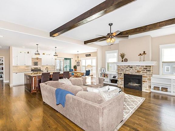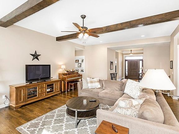 Gorgeous custom built home w/lots of upgrades!!! Open & spacious! Large living room w/built in cabinets on each side of the fireplace. Kitchen features HUGE island, awesome pantry, SS appliances, lots of cabinets & countertop space. Luxurious master suite w/oversized walk-in shower, soaker tub & "heated" floors! Granite in kitchen, office, drop zone, wet bar & all bathrooms. Lots of hardwood. Finished basement w/family room, office area, bedrooms. Safe room (10x30), fenced yard, front & back patios!