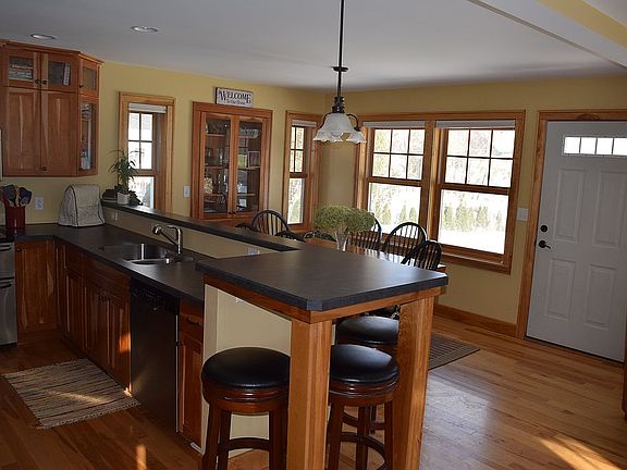 Home designed to be both space and energy efficient. Open-concept living/dining/kitchen area. Half covered and half enclosed (and insulated) front porch. Main floor living is possible (handicapped accessible) as an away room or could also serve as a first floor bedroom, or a home office. First floor includes 3/4 bath and laundry room with efficient washer & gas dryer. Stainless steel range, microwave/exhaust hood, refrigerator, and dishwasher included. Hardwood floors and custom hardwood trim on first floor; tile floors in first floor mudroom and first and second floor bathrooms; carpeting and custom finished trim throughout second floor. Second floor includes master bed & bath plus 3 additional second floor bedrooms and full bath featuring double sink vanity. A huge loft was finished out for extra room for play above the garage with ac/heat, A/C throughout, medical grade whole home air purifier installed Central vacuum throughount first and second floors and garage. New wrap around driveway added in 2019 and a poured concrete patio in back in 2022 New doors installed in 2023 Attached 2-stall garage includes dual 9' wide x 8' tall insulated garage doors with automatic openers and 8' wide x 8' tall insulated rear garage door accessible to & from the backyard. Concrete paver patio overlooks large backyard. Above garage space currently serving as cold storage is accessible via second floor. Full basement with over 8' ceiling height accessible from within the home, but also from within the garage via extra wide gently sloped staircase with insulated 48" wide basement entry door allowing for easy access for workshop equipment, firewood storage, etc. Basement includes recently completed cedar sauna featuring barreled ceiling, stainless steel electric sauna stove, and 3/4 bath. Remainder of basement space is unfinished workshop that has potential for varied use because of garage accessibility and 3/4 bath. Remodeled laundry room heated mud room Natural gas appliances include hot water heater, clothes dryer, and high efficiency dual zone forced air furnace outfitted with air conditioner, First floor features stone veneered EPA-approved secondary combustion wood burning fireplace with outside combustion air intake kit on first floor that can efficiently heat both the first and second floors with less than 3 cords of seasoned firewood (if used consistently) for the entire heating season. Very well insulated home helps keep home warmer in the winter and cooler in the summer with Zo-e glass energy efficient Weather Shield windows, Nu-Wool blown-in wall insulation, 1” rigid foam insulation exterior wall sheathing, 1-1/2” rigid foam insulation exterior basement wall sheathing and underlayment beneath basement & garage floors, and spray foam insulation in rim joist cavities. Average monthly natural gas bill past 12 months = $38.02 with low of $12.51 (summer) and high of $62.80 (fireplace not used that month). Walking distance to CLK Schools (across the avenue), Aspirus Keweenaw Hospital, Upper Great Lakes Family Health Center, Keweenaw National Historical Park, Calumet Colosseum, Calumet Art Center, etc. Winter highway accessibility is very well maintained by MDOT. Fifteen minute drive to Hancock; 20 minute drive to Houghton.