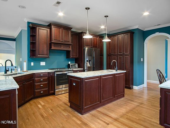 Welcome to your dream home in the picturesque Fairfield Harbour community! This spacious and inviting 3-bedroom, 3-bathroom residence is set on a double lot, offering plenty of space for you to enjoy. As you enter inside, you'll be immediately struck by the open floor plan that creates a sense of airy, modern living. The formal dining room is perfect for hosting special gatherings and celebrations, while the living room features a cozy fireplace flanked by built-in shelving, adding a touch of elegance and charm to your living space. The heart of this home is the well-appointed kitchen, complete with a convenient breakfast bar, stainless steel appliances, and a delightful eat-in dining area where you can savor your morning coffee. The kitchen is a true chef's delight, offering both functionality and style. The owner's suite is a retreat in itself, featuring a dual vanity and a luxurious walk-in tiled shower, providing a spa-like experience right at home. One of the standout features of this property is the massive screened porch located at the rear of the home. This peaceful oasis offers stunning views of the private backyard, making it the perfect spot to unwind and enjoy the tranquility of nature. Whether you're sipping your favorite beverage or reading a book, this porch will become your favorite escape. In addition to the wonderful home, you'll love the location. Situated just minutes away from Historic Downtown New Bern, you'll have access to an array of dining, shopping, and cultural experiences. Plus, you're conveniently close to the Carolina East Medical Center, ensuring that healthcare is always within reach. Don't miss this opportunity to make this Fairfield Harbour gem your new home. Contact us today to schedule a private tour!