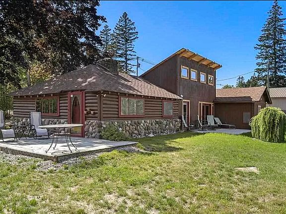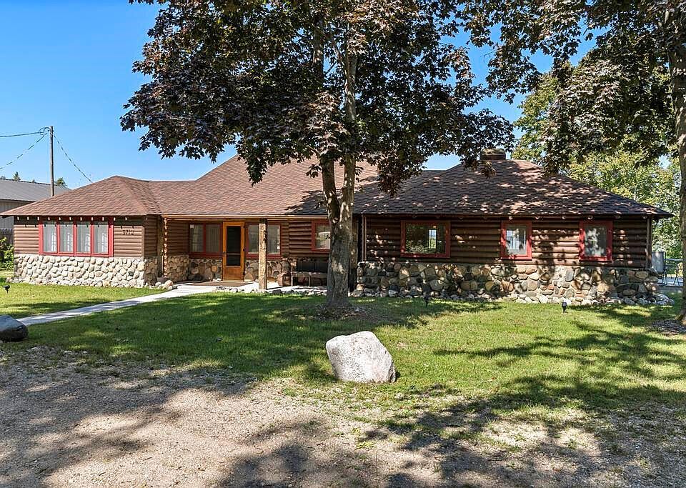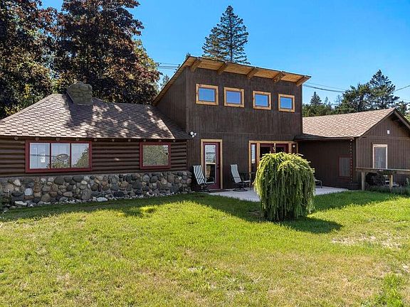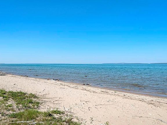 Don't miss this opportunity to own a distinctive piece of Northern Michigan's heritage. Take in the breathtaking vistas of Mackinac and Bois Blanc Islands, as well as the majestic Mackinac Bridge from your own private beach. This lovingly restored Northern Michigan home seamlessly blends modern conveniences with rustic charm. Step inside to find a grand foyer that uniquely showcases the exterior of the original log cabin. The soaring ceiling and wall of windows looking out over the Straits of Mackinac is sure to impress. Experience the epitome of hand-craftsmanship with tongue-in-groove cedar, bespoke built-ins and detailing with select woodwork milled onsite while enjoying modern amenities such as integrated a luxury spa bathroom, LED lighting throughout and high-speed fiber internet. Presently configured in a split floor plan with two bedrooms and two bathrooms, the residence offers several versatile options to suit your needs, including the potential for a third bedroom or swapping out the family room for an expanded primary suite. There is a long list of extensive updates over the past 3 years, including electrical, plumbing, insulation, roof, HVAC ductwork, kitchens, baths, all appliances, lighting, fixtures, flooring and more.