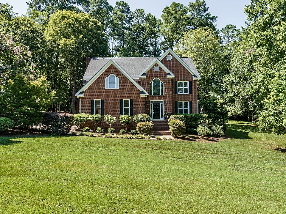 All brick custom home on acre+ featuring $55k+ in upgrades incl NEW Roof, NEW patio w/firepit, NEW carpet & refinished hrdwds, NEW paint, NEW plumbing+H2O filtration thruout. Spacious eat-in kitchen w/granite+S/S appliances. Fam rm w/FP. Formal dining+Theater room. Owner's retreat w/lg WIC. Lighted gaming area in expansive 3rd fl bonus/opt.bed 5 w/full ba. 3 zone HVAC, screened porch+large garage w/NEW wood shelving. No city taxes, no HOA+well maintained neighborhood close to NCSU,DWTN,Cary/Apex/HSprings.