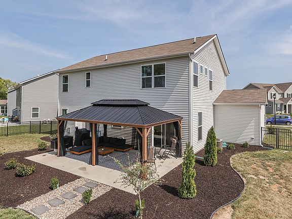 Better than new MI Homes stunner in Riley Meadows & Center Grove schools! This home is full of upgrades. 3 BR, 2.5 full bath home features 9' ceilings & open concept. Enjoy your large open kitchen w/tile backsplash, center island, LVP flooring, dining area and pantry. Great room features a gas fireplace, in-ceiling speakers and motorized blinds while the office/den offers work from home privacy. Owner's suite features tray ceiling, motorized blinds, dual vanities in bath, marble tops and walk-in closet while the loft provides a second floor spot to watch TV or a place to play. Three car garage is a bonus as is the 16'x24' patio w/gazebo, the largest lot in the neighborhood with a fully fenced rear yard and a pond view.
