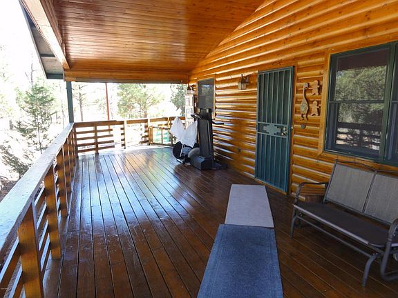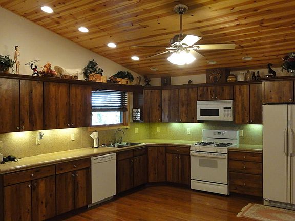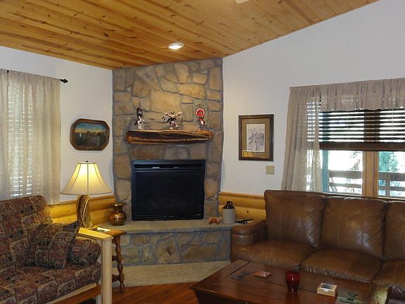 Wow, This custom built, log cabin style home is gorgeous and sits on a large cul-de-sac lot with tall pines and is just under an acre. This is not a typical cabin in the woods. The sellers have meticulously cared for this home and spared no expense in creating a place where you can spend just the weekend or live here all year long. Features include Beautiful hard wood floors in the large great room and hardwood plank ceilings, Upgraded cabinetry with Granite counter tops, 2 in. wood blinds, Stone faced gas fireplace, Full length porch which wraps around the home (sellers just re-stained and sealed the entire exterior), Enclosed rear yard, Paved Drive leading to oversized two car garage, and propane backup generator which provides power to the entire home. Plus washer, dryer and fridge incl