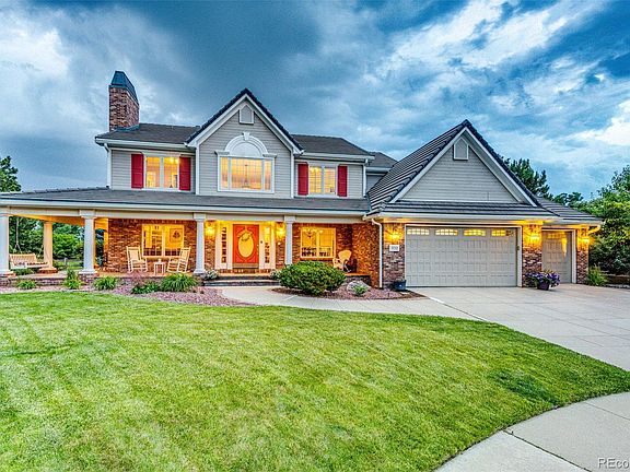 Stunning completely “Customized” west facing home in the Hillsboro neighborhood of Grant Ranch. Prime location at the end of a cul-de-sac, with sides and back bordering open space offering panorama views of three lakes, the mountains and City. Curb appeal is spectacular with a covered wrap around porch, beautiful, paved walkway, and built-in speakers. Covered retreat in the rear was designed with outdoor entertaining in mind featuring built-in Viking and Sub-Zero appliances, Fire Pit, Surround sound speakers, Ceiling Fan, Lights, and brick pavers, along with two raised bed vegetable gardens and a luxurious hot tub. As an added private outdoor space, you will find a lush, private 400 Sq. Ft. terrace off the master bedroom, with low voltage lighting and floating tile flooring. Perfect for quiet evenings watching city lights and holiday fireworks. The interior boasts an endless number of carefully curated elements, exquisite spiral staircase as you enter, soaring ceilings, crown molding, three custom-crafted fireplaces, plantation shutters and newer Pella windows (2020). The kitchen is a chef’s dream with granite counters and backsplash, newer Wolf gas cooktop and microwave (2020) Miele dishwasher and custom cherry cabinets with pull-out shelving throughout. The sunken living room integrates beautifully into the already spectacular setting. Main floor study features detailed bookcases and private entrance. Primary suite is the ultimate retreat with a huge walk-in closet and the en-suite bath features heated travertine tile floors, steam shower, Jacuzzi tub, built in speakers, and newer Toto toilet with bidet and seat warmer (2022). The finished basement is an amazing space with 10-foot ceilings, a bedroom with built-ins for an additional office and/or craft room and an expansive built-in storage room. The three-car garage is spacious with custom Elfa shelving. Embrace the amenities the Grant Ranch neighborhood has to offer: pool, tennis, pickleball courts, lake.