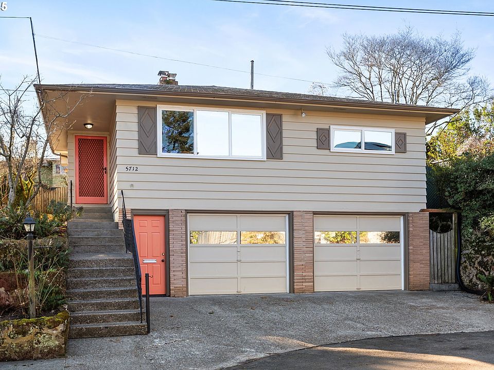 Easy to fall in love with this well-kept time capsule! An unusual MCM multi-level design with original trim, wood floors, and charm. Ample entry area pours into the living room balanced between a moody fireplace & bright windows. There is a wide opening to the dining area and kitchen with original cabinets in great condition. 5 steps up to 3 beds, 2 baths, a covered patio, and a lush bird/bee/butterfly garden. Downstairs is a rumpus room, bonus room, storage+, and an oversized 2-car garage with a workbench. Tucked in a rare city cul-de-sac blocks from Mt Tabor, coffee, restaurants, middle school, and Portland Nursery! [Home Energy Score = 1. HES Report at https://rpt.greenbuildingregistry.com/hes/OR10235881]