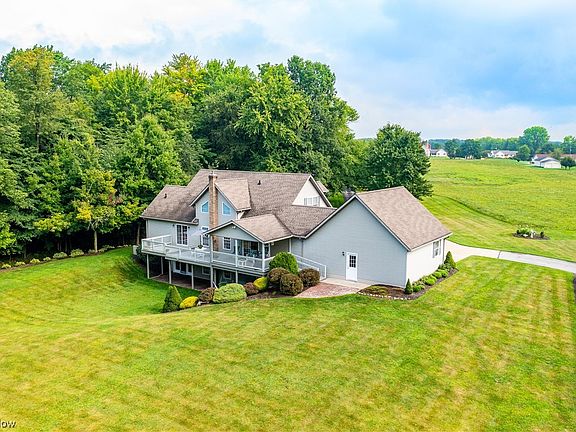 Nestled on a 12.4-acre lot in Marlington Schools, this magnificent home boasts over 4,000 sq ft of living space and a desirable open layout ideal for entertaining. As soon as you walk in, you will admire the fantastic views, natural light, and spacious floor plan. Located off the foyer is an elegant formal dining room. The 2-story great room is warmed by a floor-to-ceiling wood-surrounded fireplace, vaulted ceilings, and large windows, flowing seamlessly into the eat-in kitchen. The open kitchen offers cabinets galore, crown molding, stainless steel appliances, a breakfast bar, and a dining area with sliding doors to the oversized deck. The partially covered deck overlooks the vast backyard and is perfect for gatherings with family and friends. The 1st-floor master suite offers access to the deck, a private bath with a massive walk-in closet (10x7), a jetted tub, a tile walk-in shower, and a double vanity. Completing the 1st floor is a convenient half bath, a laundry room, and a guest