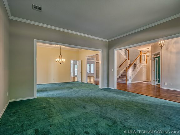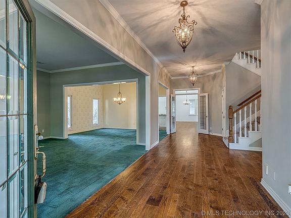 Located in Jenks Southeast Schools, this stately 2-story brick home is tucked away in the desirable community of Forest Park South (South Tulsa) on a .41 acre lot beneath towering trees. Inside, you’ll find the perfect marriage of space and luxury. With 6,111 SF, 6 true bedrooms, 4 full baths, 3 half baths and garages for 4 cars, this home has it all! Hardwood floors flow from the entry to the living room with gas fireplace. Dedicated office, powder bath and formal living and dining rooms all located off the main entry. A spacious family room opens to the large kitchen, with abundant cabinetry for storage, beautiful granite countertops and an island with additional seating for quick meals. The downstairs master suite offers a private bath and huge walk-in closet. Upstairs is a game room with a powder bath and 5 bedrooms, including 1 with a private bath and 4 with access to 2 Pullman baths. Spacious laundry room with sink, powder bath and space for an additional refrigerator or freezer. Lots of storage throughout the home. Backyard features a decorative fence and ample room