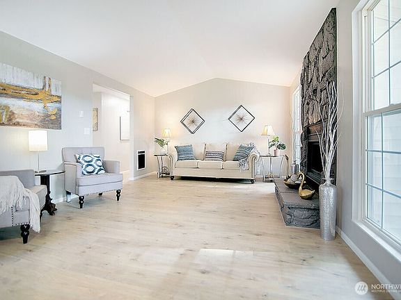 Vancouver -- Large Lot Nearly 1/4 Acre -- 3 Bed / 2 Bath -- 1212 Sqft -- 1 Level Home -- Living Room -- Wood Burning Fireplace -- Kitchen w/ Stainless Steel Appliances -- Quartz Countertops in Kitchen & Bath -- Dining Area -- Primary Bedroom w/ Bathroom & Private Patio -- Laminate Flooring -- Vaulted - New Fixtures - Vinyl Windows -- Large Fully Fenced Yard -- Garden Space -- Shed -- Landscaping -- Trees -- Attached Double Car Garage with Opener -- Newer Roof -- Trees -- Culdesac -- 10 Minutes to Vancouver Mall