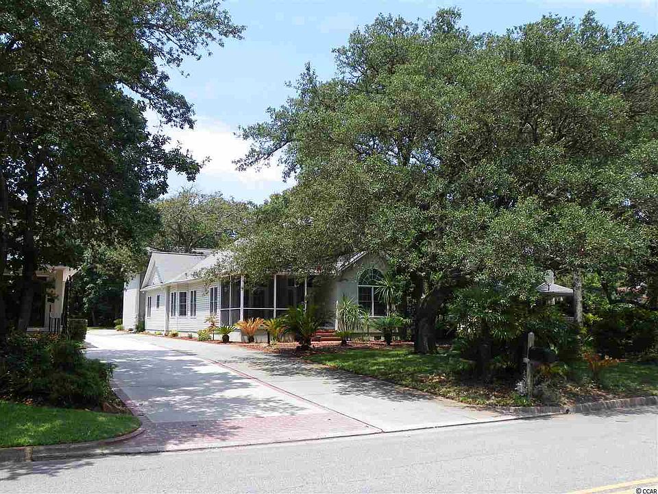 This is a one of a kind home on a one of kind street in the heart of Myrtle Beach. This awesome 4BR 3BA home is 1.5 blocks to the heart of the Golden Mile which will set you onto Myrtle Beach's best beaches. This single level home sits on one of Myrtle Beach's most beautiful and desired streets. The main home is a single level 3BR 2BA home with several great features. Beautiful hardwood floors run throughout the his great home and large rooms await you. The spacious 16 x 20 family room with vaulted ceilings offer tons of room for the family. This open floor plan gives you a 18 x 11 dining room with a tray ceiling. The 23 x 12 open kitchen has a wet bar, tons of cabinets and counter-space, solid surface counter-tops, breakfast nook, stainless steel appliances(less than four years old and hardly used), gas range, large pantry, and tons of windows for a bright and open feel. Every room in this great home offers tons of space. The 14 x 18 master bedroom(main floor) with tray ceilings has two large walk in closets, double sinks, whirlpool tub, and a separate stand up shower. This home has hardly been used by the current owner and new HVAC units were installed in 2009(main house) and 2011(guest house/mother in law suite). Sit on your front, screened in porch under one of the oldest live oaks in Myrtle Beach and enjoy this awesome home. The mother in law suite is the fourth bedroom and is connected to the home by a covered walkway. The guest house/mother in law suite has it's own full kitchen, breakfast nook/dining area, and living room, separate bedroom and full bath. There is an over sized two car garage below the guest house/mother in law suite, and your back yard offers tons of privacy and additional parking. No HOA to tell you what to do all while living in the most prestigious section of Myrtle Beach. If you are looking for the absolutely perfect place to call home in Myrtle Beach, this is it.