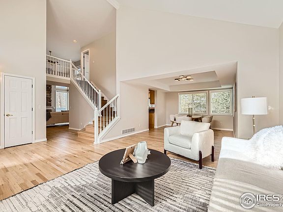 Turn-key spacious 2-story home on a corner cul-de-sac lot in convenient Gunbarrel North neighborhood! Filled with natural light featuring large room sizes and high ceilings, one of the largest houses on one of the largest lots in the community. Recent updates include granite/maple kitchen with stainless appliances, renovated primary 5-piece bath in large primary suite offering gas fireplace, refinished hardwood flooring throughout most of main level plus new tile/carpet flooring, new windows (except for basement), fresh interior paint, and more. Nicely finished basement with conforming bedroom offering murphy bed, huge rec room as well. Free and clear owned solar PV, tankless hot water heater and new HVAC. Great yard with large deck and pergola, raised garden beds, close to neighborhood park and walking path. Easy commute location throughout the front range completes the scene!