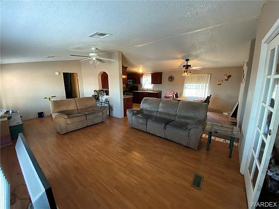 Check out this cute home, PRICED TO SELL Large living area is open to kitchen. Kitchen has recently updated cabinets and in home laundry. 3rd Room that could be used as a bedroom or an office. Split floor plan offers privacy. Chain link fencing surrounds the property with room to park your RV/boat! Two exterior sheds, to store all your tools and projects. Close to Colorado River Beaches & Avi Casino Boat Launch. HOA is voluntary