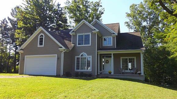 MUST SEE premium 5 bed 2.5 bath 2,600+ sq ft home built in 2006. Sitting on 1.6 acres & 75' of lakefront, this home was built for enjoying the astonishing lake views/sunsets. Upgrades include geothermal heat and central A/C, Cambria counters, Homecrest cabinets, Marvin windows, Superior foundation walls, Trex decking. Open floorplan with 1st floor master suite & walk-in closet. Potential to increase living space in the ready to finish walkout basement. Public sewer & water, high speed internet, cable TV, & natural gas available. Boat to dinner or vineyards! Excellent primary or vacation home!