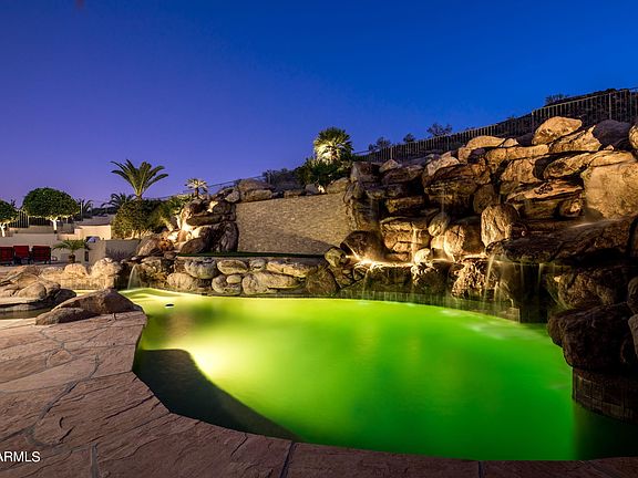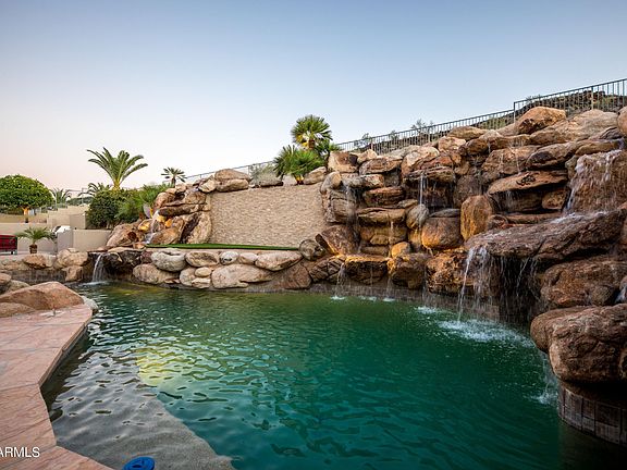 A hard to find special home in an incredible setting. This Custom Wimberly Bensen Home nestled in the Thunderbird Mountain range, boasts a beautiful desert view and the serenity of backing to a mountain preserve that provides the quietness and comfort of southwest living. This stunning Arizona resort style paradise offers a beautiful backyard oasis. Relax alongside three serene waterfalls flowing into the lagoon style pool, or unwind in the six-person jacuzzi. A built-in barbecue for the grilling cook as well as seating to just relax and take in the entire experience. Gorgeous kitchen opens to the family room with gas fireplace, plus a walk-in pantry and wet bar. Master Suite with luxurious bath and 2 walk-in closets.