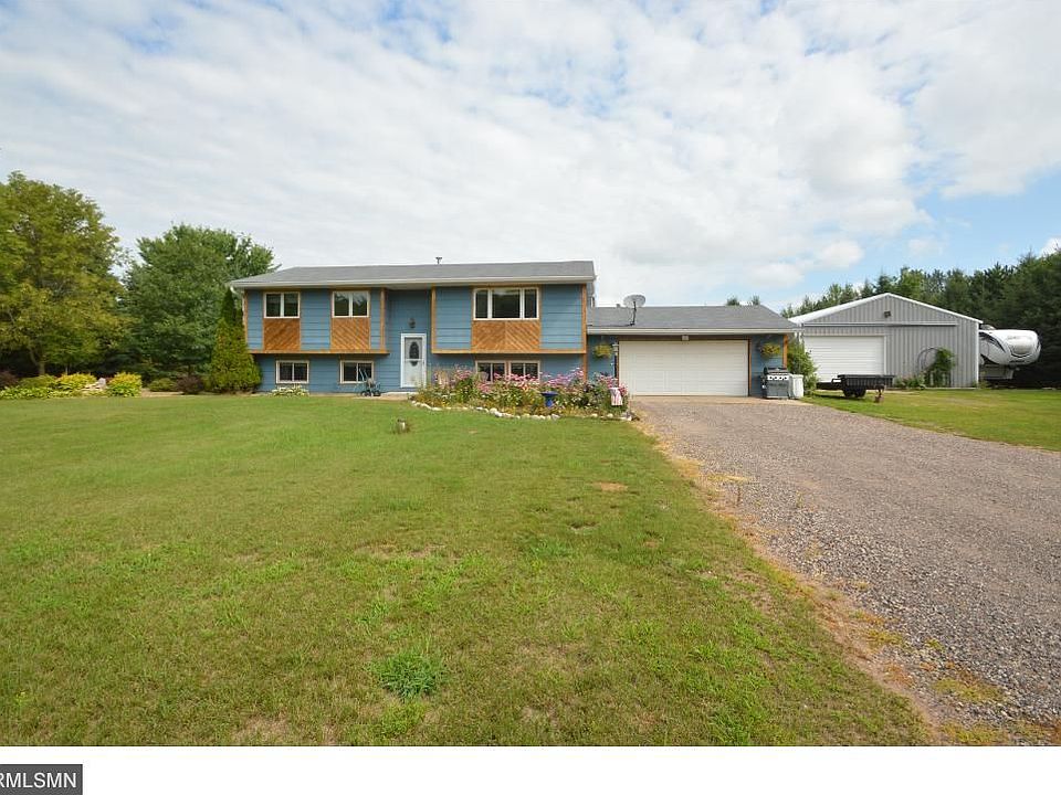 Spectacular home sitting on 1.49 acres with a large pole barn. Enjoy the inside of a cozy cabin feeling with three bedroom and two baths. Beautiful pine woodwork throughout the home. Cold winter nights near the fireplace in the family room will make great memories! Home warranty included. Easy access to I35. Raised bed garden behind the pole barn!