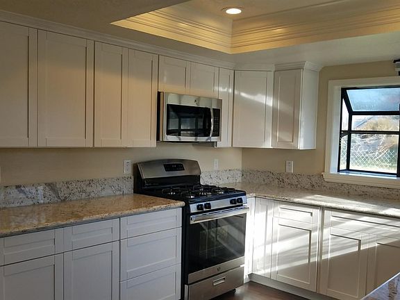 Won't last long at this price. Completely REMODELED! New carpet, tile & laminate. New kitchen & bathrooms. New stainless appliances - gas range, microwave & dishwasher. New fixtures, mirrors, vanities, dual pane windows, fans. New paint, lights. AMAZING detached 812 sq ft 2 car tandem garage with drive through access to paved area in back yard. Spacious fenced back yard. Shop area in garage with extra storage. Close to freeways, shops and schools. Due to high interest & MULTIPLE OFFERS, then HIGHEST & BEST due by 3pm, 3/8/18.