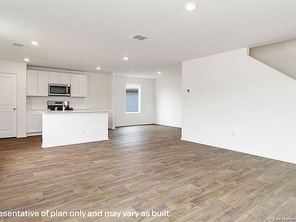 The Franklin plan is one of our two-story homes featured in Stonehill in San Antonio, TX. This new home layout offers 2 classic front exteriors, 5 bedrooms, 2.5 baths, 2 car-garage and 1891 square feet of comfortable living. Step inside The Franklin to find an elongated foyer opening to an open concept living room, kitchen, and dining area. The gourmet kitchen faces the living area so you don't miss a thing while cooking and includes quartz counter tops, stainless steel appliances and shaker style cabinetry. The main bedroom is located toward the front of the home on the second story and features an attractive attached bathroom with a walk-in shower, quartz countertops, a grand walk-in closet and plenty of storage space. The second story includes all secondary bedrooms, and two full bathrooms. You'll have carpeted floors in every bedroom and sheet vinyl flooring in your bathrooms and utility room. Additional features include sheet vinyl flooring in entry, living room, and all wet areas, quartz counter tops in all bathrooms and HOME IS CONNECTED base package. Using one central hub that talks to all the devices in your home, you can control the lights, thermostat and locks, all from your cellular device.