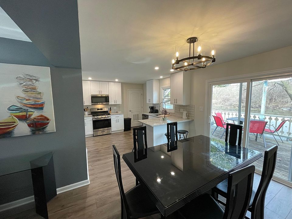 Luxurious accommodations 3br 1.5 bath single family home right on the channel that leads to Chain of Lakes, House comes fully furnished and available for Short Term or Long-Term rental. Updated throughout with all modern amenities. Large deck oversees peaceful channel. Large kitchen with dining area. Laminate flooring, Central Air, freshly painted. Large 2.5 car garage, Furniture can be cleared upon request. Month to Month rental available at higher rate. Please call for faster response. Renter is responsible for all utilities including landscape and snow removal