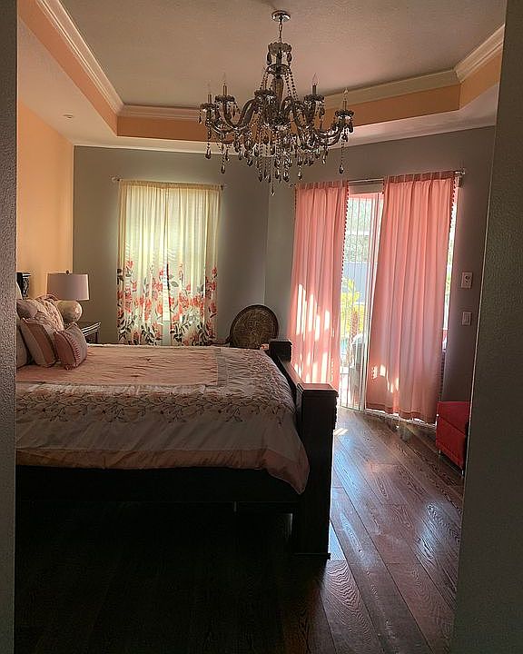 Distinctive CUSTOM POOL HOME in Three Oaks. 4 bedrooms...3 full bathrooms...3 car garage. This house is "dressed to impress" with upgrades rarely seen in this price range. Architectural details throughout the home include arches, columns, niches, transom windows, tray ceilings, plant shelves and multiple built-ins. The chef's kitchen features granite tops, 42" wood cabinetry and stainless steel appliances. There is a wood burning fireplace in the living room. The master suite features a tray ceiling, wood floors, his and her closets, and a Roman style Carrera marble bathroom with a steam shower. The exterior features paver driveway, stone facade, custom korbels, mature exotic palms and a fenced private yard. New AC installed in Dec 2019. Centrally located to everything. A+ rated school district. Let's make this spectacular house your home.