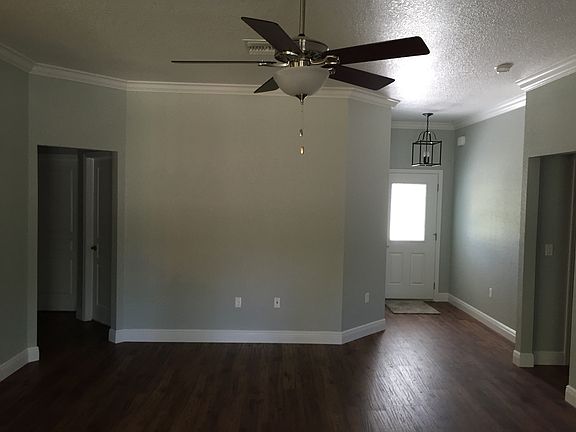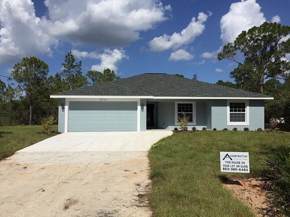 Newly constructed home on 1 acre upgraded cabinets granite counter tops tiled back splash in kitchen ceiling fans crown molding 5 1/4" baseboards laminate flooring in main areas irrigation system for yard tiled front porch finished garage floor and back porch floor upgraded carpet in bedrooms walk in shower in master bedroom walk in closet in master bedroom tiled laundry room with wash sink pull down stairs insulated low E windows screened porch call mike at 863-385-6483