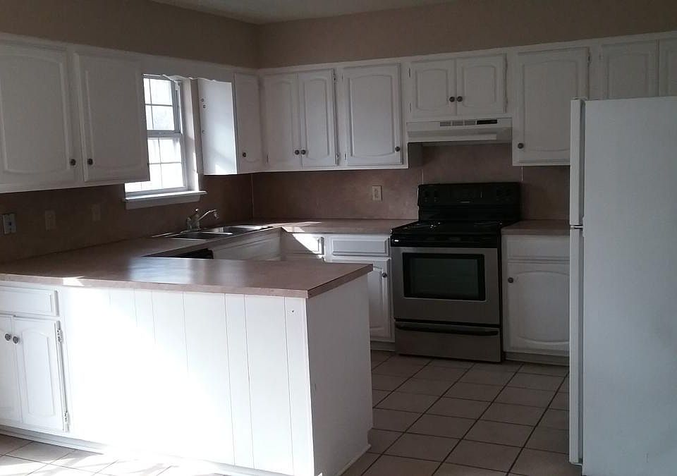Large kitchen and dining. Large living area with fireplace and built in bookcase, utility room with washer/dryer hookup and storage cabinets. Master bedroom has 2 walk-in closets. 2 car garage with opener, privacy fence in back yard. Central heat and air. No smoking in duplex. Near Grimes elementary school. NO APPLICATION FEE. 12 month lease. Tenant pays all utilities