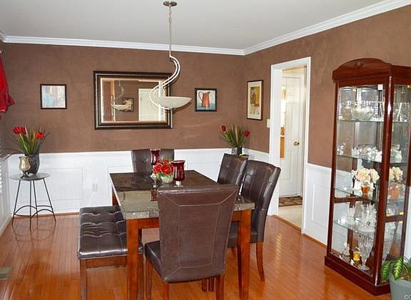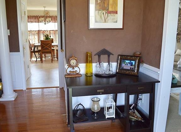 Lovely 5 bedroom, 2 1/2 Story home with vinyl siding & 2 car garage situated on cul-de-sac lot. Features hardwood floors in foyer, dining room, and half bath. Two columns separate the formal dining room and foyer. Large great room with corner gas fireplace and french door leading to rear deck. Large eat-in kitchen has island and pantry, & Refrigerator conveys. Second level includes large master bedroom and master bath with shower & jacuzzi tub, plus more 3 bedrooms, hall bath and laundry area off hallway. Washer & dryer conveys. Third level includes 5th bedroom and walk-in attic. House also includes 2 zone heat pump, & double width asphalt drive.