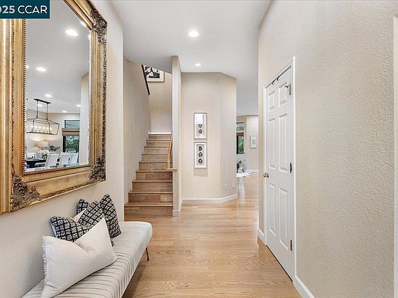 Rare opportunity to own a beautifully updated 4,017 sq ft home nestled on a cul-de-sac w/Stunning canyon views in the coveted Columbia neighborhood! This exceptional 5 bed 3 full & 2 half bath home offers a spacious layout filled w/custom accents perfect for everyday living & entertaining. The main level features Formal living & dining room w/vaulted ceilings, chef’s kitchen w/granite countertops, ample cabinetry, high-end SS appliances & a built-in refrigerator, opens to family room w/slider to yard, 3 bedrooms plus one primary suite w/walk-in closet & accessible bathroom. Upstairs, you’ll find a luxurious primary suite w/a sitting area, walk-in closet, & spa-like bathroom, an oversized bonus/media room w/projector and kitchenette, adding to the home’s extensive living area. The entertainer’s backyard living area boasts a covered patio w/fireplace, heaters, built-in BBQ, sink, ice machine, refrigerator, lush landscaping, a generous grassy area, patio & view of serene hills—all visible from the home’s many windows & sliding doors. Additional highlights include laundry room, three-car garage w/epoxy flooring, an owned solar system w/a new inverter. Enjoy the community pool, park & many walking areas. Enjoy all that Castro Valley has to offer! Open Sat 3/8 & Sun 3/9 1:30 to 4