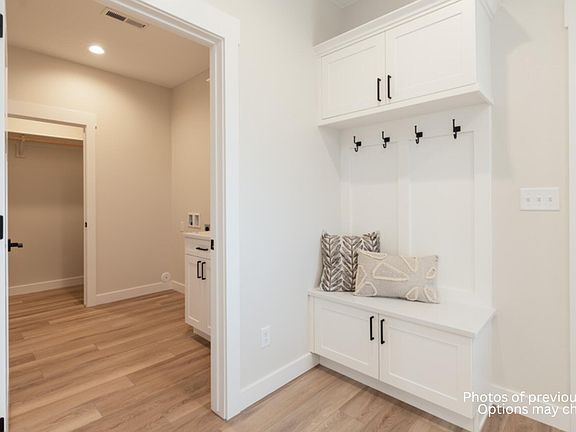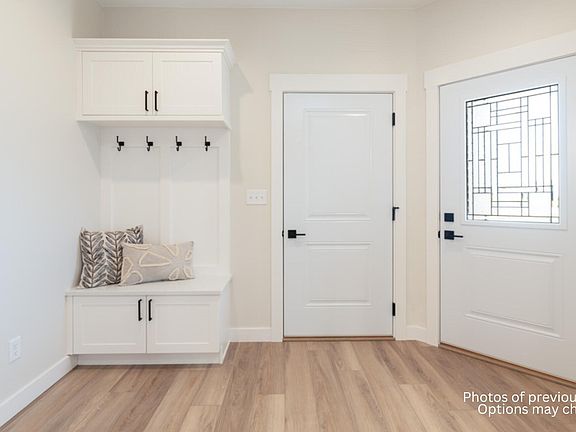Welcome to this exquisite twinhome with a captivating blend of modern elegance and cozy living. This 3-bedroom, 2-bathroom residence boasts a host of high-end amenities, all within an intelligently designed open floor plan that promises to elevate your daily life. As you step through the well-conceived entrance, you'll find a welcoming bench adorned with hooks - a convenient space for hanging coats, bags, and other everyday essentials. The practicality of this home continues with a roomy laundry area, replete with built-in storage for optimal organization. The kitchen is a sleek masterpiece with its quartz countertops and an accompanying tiled backsplash that exudes sophistication. Shiny stainless steel appliances complement the backdrop while under-cabinet lighting adds a touch of ambiance, making this space perfect for both cooking and entertaining. A spacious pantry ensures convenient storage. The dining area seamlessly connects to a delightful patio, enhancing the indoor-outdoor experience. The living room, with its charming boxed ceiling adorned with beams, centers around a cozy gas fireplace. The primary bedroom is a true sanctuary, complete with a boxed ceiling that exudes elegance. A roomy walk-in closet ensures your wardrobe stays organized. The primary bathroom is a luxurious haven, featuring a dual sink vanity that balances convenience and style. Step into the tiled shower for a spa-like experience in the comfort of your own home. Don't overlook the fully finished garage, which comes equipped with a heater for year-round comfort. Floor drains make maintenance a breeze, and hot and cold water hookups offer added convenience. This property also includes a comprehensive landscape package with sod, a sprinkler system, and concrete edging to complete the overall appeal of your new home. Agent/Owner. Photos of previous build.