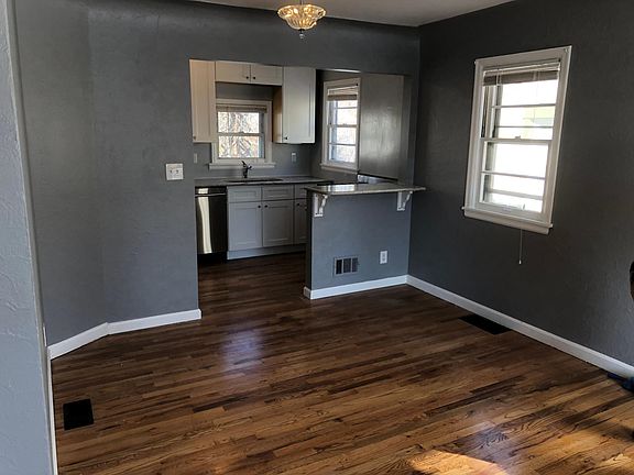 Live walking distance to shops and restaurants in Olde Town Arvada! This quaint 1950's style home has a finished basement which includes a family room and fireplace, extra room with 3/4 bathroom, office space and full size laundry room. The bright and cheery upstairs has a kitchen with small bar and window to the back yard over the sink, family room, dining area, two sunny bedrooms and full bathroom. The back yard is fenced, with room for one pup to roam and kids to play. The giant 600 square foot garage is a perfect place to store toys, or cars or extra stuff. This is a cute little/big house only four blocks from seasonal festivals, unique shops, public library, trendy restaurants and don't forget the G Line to downtown Denver! Tenant responsible for all utilities