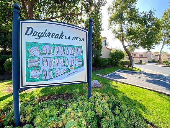 This quiet 3 bedroom 2.5 bath 1385 sqft townhouse in highly desirable La Mesa’s Daybreak community is located just a short stroll to Lake Murray. The open-floor concept dwelling with all 3 bedrooms upstairs features vaulted ceilings and a balcony in primary bedroom, a cozy brick fireplace, a large patio off living room and lots of closet space. The townhouse also comes with a convenient attached two-car garage, providing secure parking and additional storage. Full size washer & dryer are included. The monthly HOA dues in this pet friendly community cover trash pick up and exterior & common grounds maintenance. Daybreak's ideal location provides quick access to the I-8 freeway, making it easy to commute to SDSU, Grossmont College, Mission Trails Regional Park, Costco and Grossmont Hospital. Everyday grocery options and public transportation are within walking distance, adding to the convenience of living in this fantastic area of La Mesa.