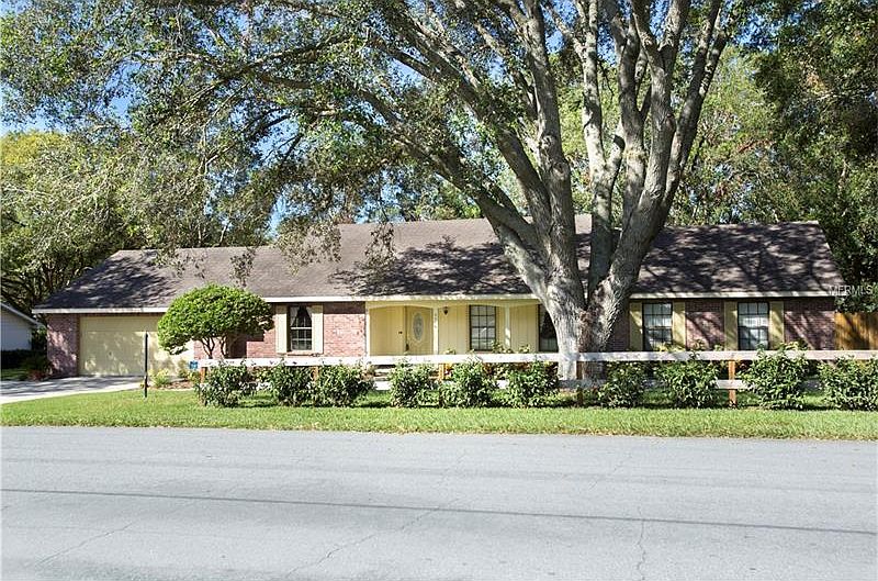 Charming Ranch-style home in a great location with great school districts! 2417 sf of living space with formal living & dining rooms, spacious family room , sun room, 4 bedrooms, 3 bathrooms with a huge fenced back yard. The kitchen showcases raised panel wood cabinetry, granite counter tops, and is located at the center of the home, overlooking the large family room with wood burning fireplace. The home has an over sized two car garage, and just behind the home there is an additional detached 3 car garage (720 sf) that could easily be converted into a bonus room, workshop, or mother-in-law suite. Additional features include inside laundry room, covered front porch, brick lanai overlooking the large back yard with plenty of shade.