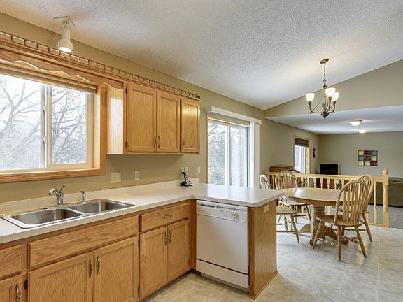 Awesome modified 2 story situated on a cul-de-sac with a nature area behind the home. You will love the view and the visits from deer and wild turkey in the back yard. The kitchen is huge with 3 walls of cabinets. A peninsula is perfect for entertaining or everyday living. The front living room features wood floors and could be used as a formal dining room if desired. The home has and open feel with the high vaulted ceiling. A main floor family room is located just off the dining area and is the perfect spot for the relaxing. A den/bedroom is also located on this level as well as the laundry. The walkout lower level is huge. There is plenty of room for the largest gatherings or all kinds of toys to be spread out. A 5th bed room, bathroom, and all kinds of storage are on the lower level. The master bedroom features a huge walk-in closet with organizers. There is a total of 3 bedrooms on the upper level. The cul-de-sac is nice and quiet with very little traffic. Parks and schools are nearby. Don't wait come and see today.