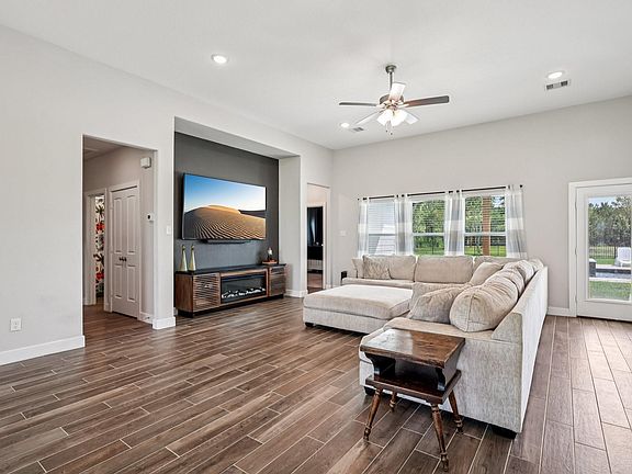 Welcome to this stunning custom-built home in the heart of Santa Fe! Enjoy the perfect blend of comfort and space with 4 peaceful acres, your own sparkling saltwater pool, private pond, tons of parking, and a 30x50 shop perfect for the hobbyist of the family. The kitchen is a chef's dream with double oven and 8 foot long island overlooking the living room. Outside you'll find the home is already equipped with permanent outdoor lighting... you won't have to worry about hanging your holiday lights! The chicken coop awaits your feathered friends, and the fully fenced backyard is ready for your 4-legged family members. Your peaceful country home is waiting- schedule your tour today!!