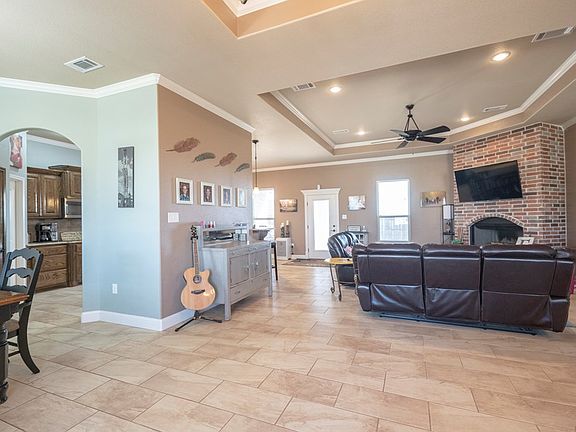 GORGEOUS RE-SALE BY KEA BUILDERS IN SUBDIVISION SOUTH OF MIDLAND! 4 BD, 2 BATH LOVELY BRICK HOME BUILT IN 2016 ON AN ACRE FEATURES OPEN CONCEPT, TALL CEILINGS, TILE FLOORING & PLANTATION SHUTTERS! KITCHEN INCLUDES GRANITE COUNTERTOPS, TONS OF CABINETS, DOUBLE OVENS & COOKTOP! SEQ MASTER SUITE ROOMY W/ DUAL SINKS & JETTED TUB! CORNER LOT W/ WOOD FENCE FOR BACK YARD & 20x20 METAL SHOP (ONE GAR BAY)!
