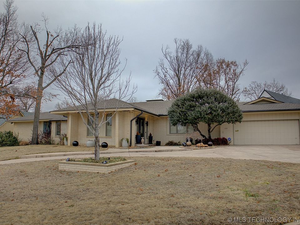 This impeccable Mid-Century home has it all. The beautifully designed interior with tasteful finishes and refined detailing is fully updated with the dreamiest kitchen for those who love to cook or entertain. Kitchen has quartz counters with seating, an abundance of storage, well appointed cabinetry, double wall convection ovens and a 6-gas burner designer Kitchen Aid oven, breakfast nook. Formal dining, 2 living, larger living has gas log FP. Tons of natural light, great storage. New roof! Beautiful, heated cocktail pool and wonderful outdoor living. Newly refinished hardwood floors. Mature trees, circle drive; very spacious yet feels like home.